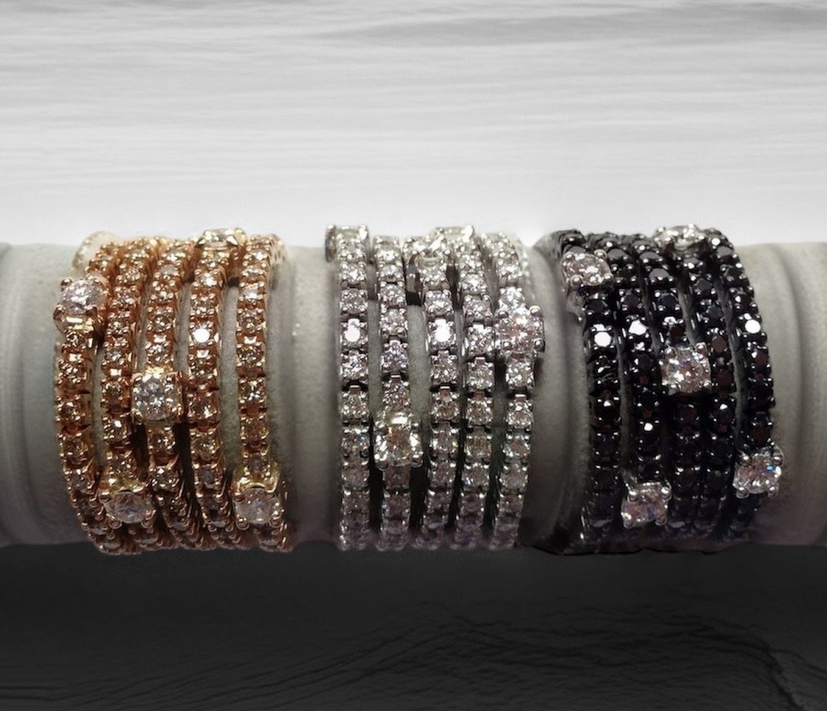 in alternativa la personalizzazione su colori di oro (giallo,rosรจ,nero) , e diamanti (bianchi,neri,marroni,colorati) per renderli davvero unici.