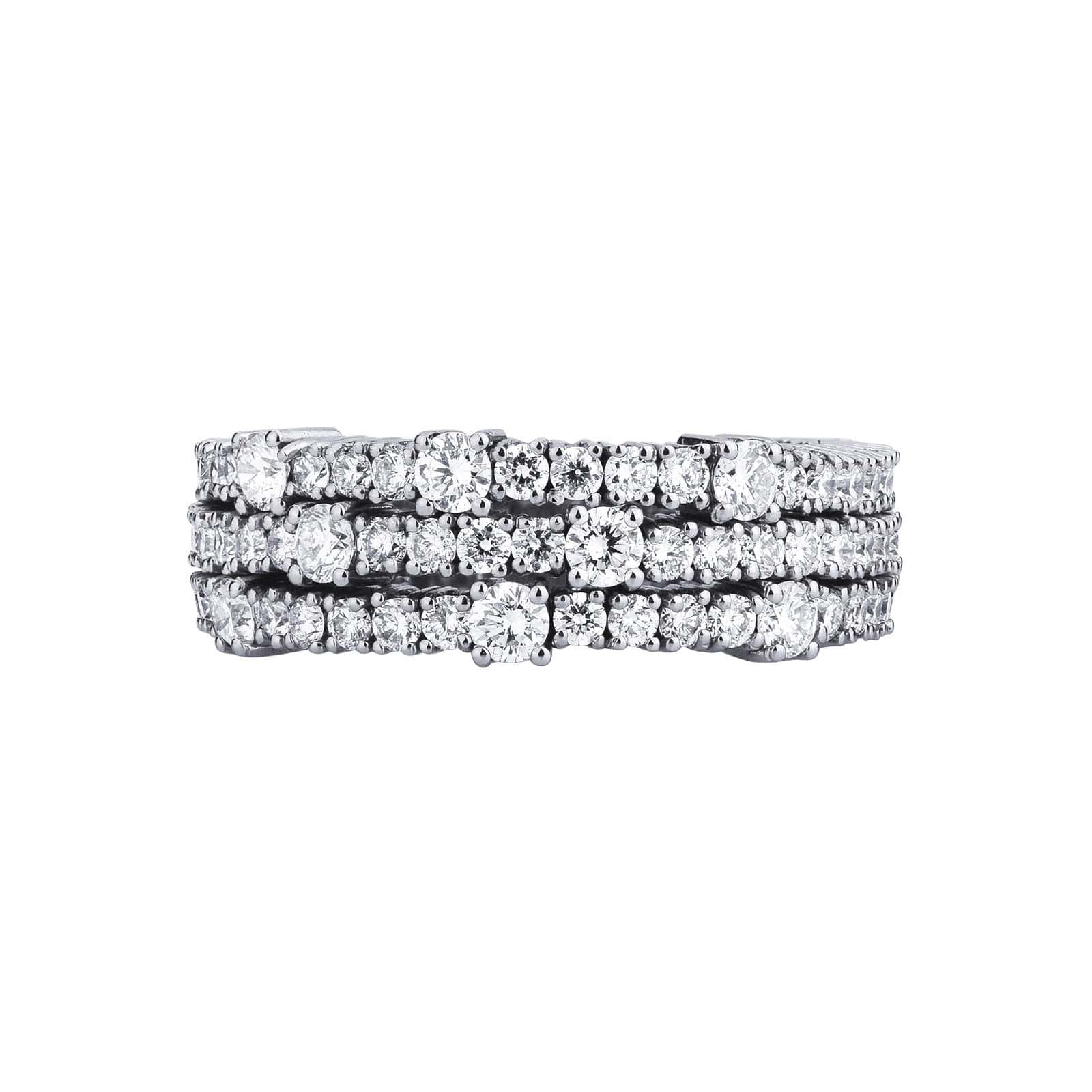 Anello tennis in Oro Bianco 18k composto da tre file separate con incastonati diamanti taglio brillante colore H e purezza Vs,