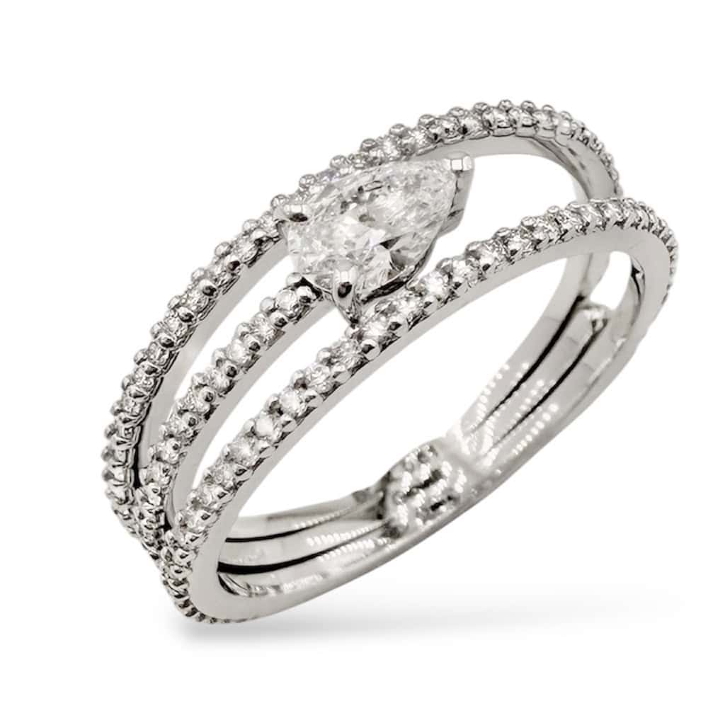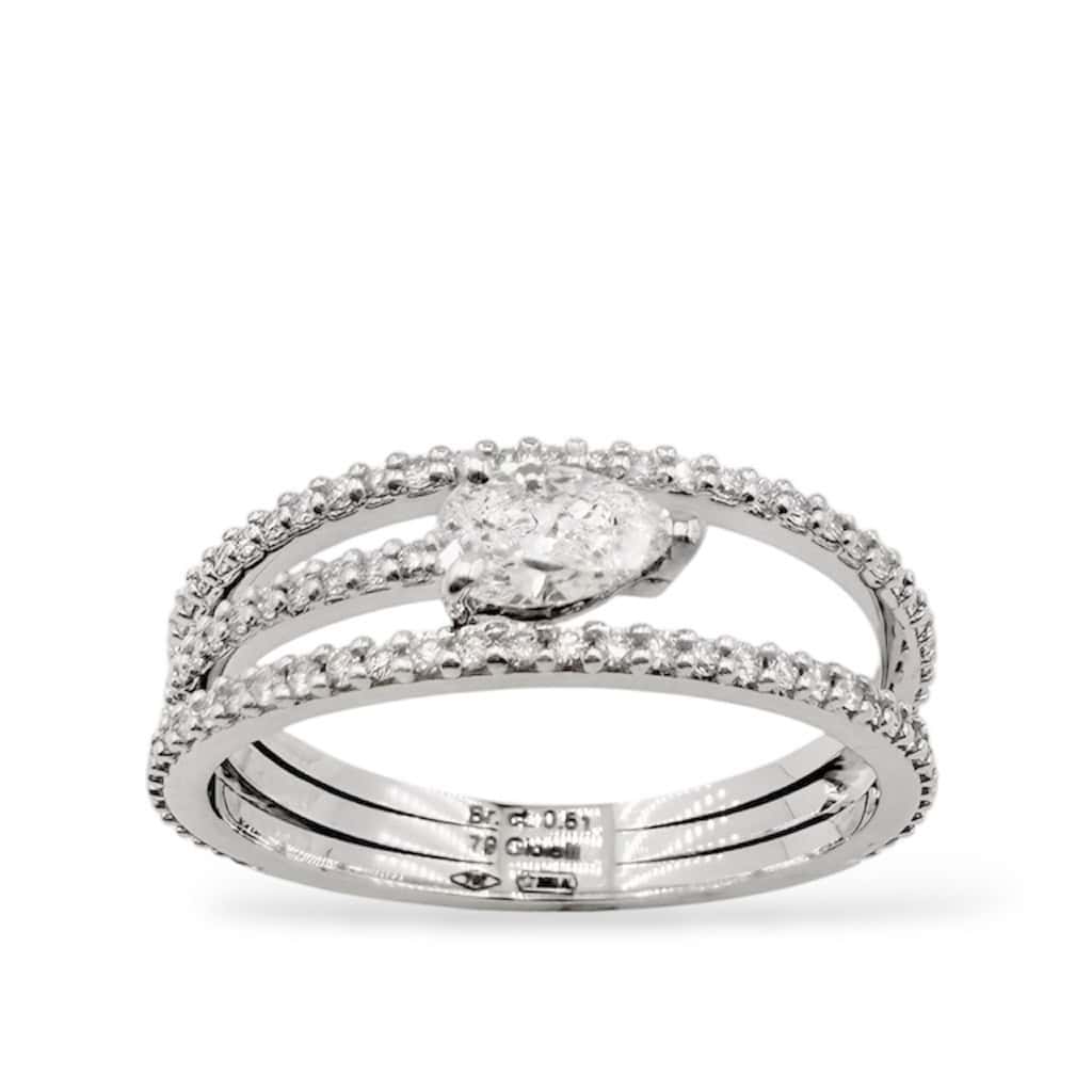 Anello sgriffato con goccia in oro bianco 18kt e diamanti