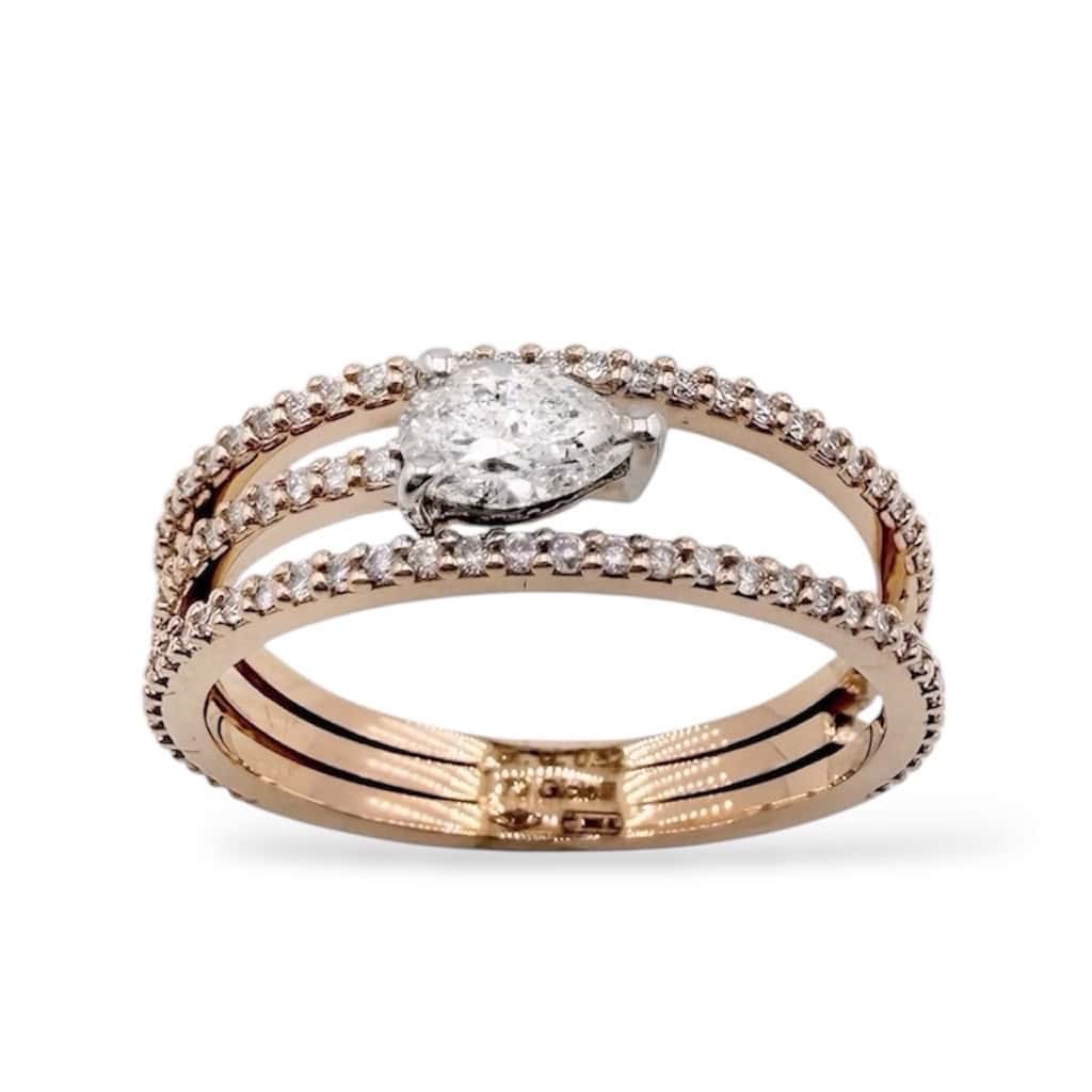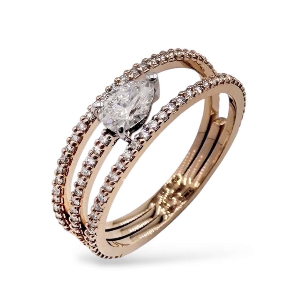 Anello in oro rosa 18kt sgriffato con goccia e diamanti