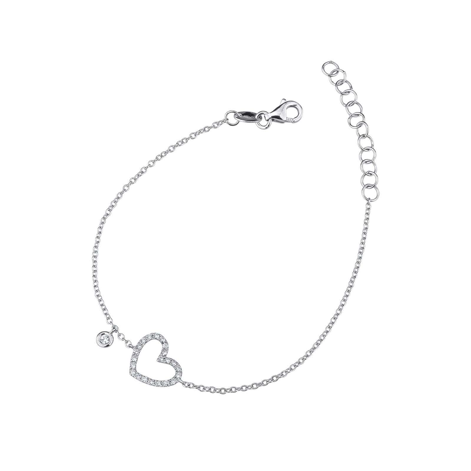 Il bracciale con iniziale รจ un gioiello personalizzato e significativo, che porta con sรฉ un tocco di individualitร e stile, in oro Bianco 18k catena con un cuore e diamanti taglio brillante colore G purezza Vs,