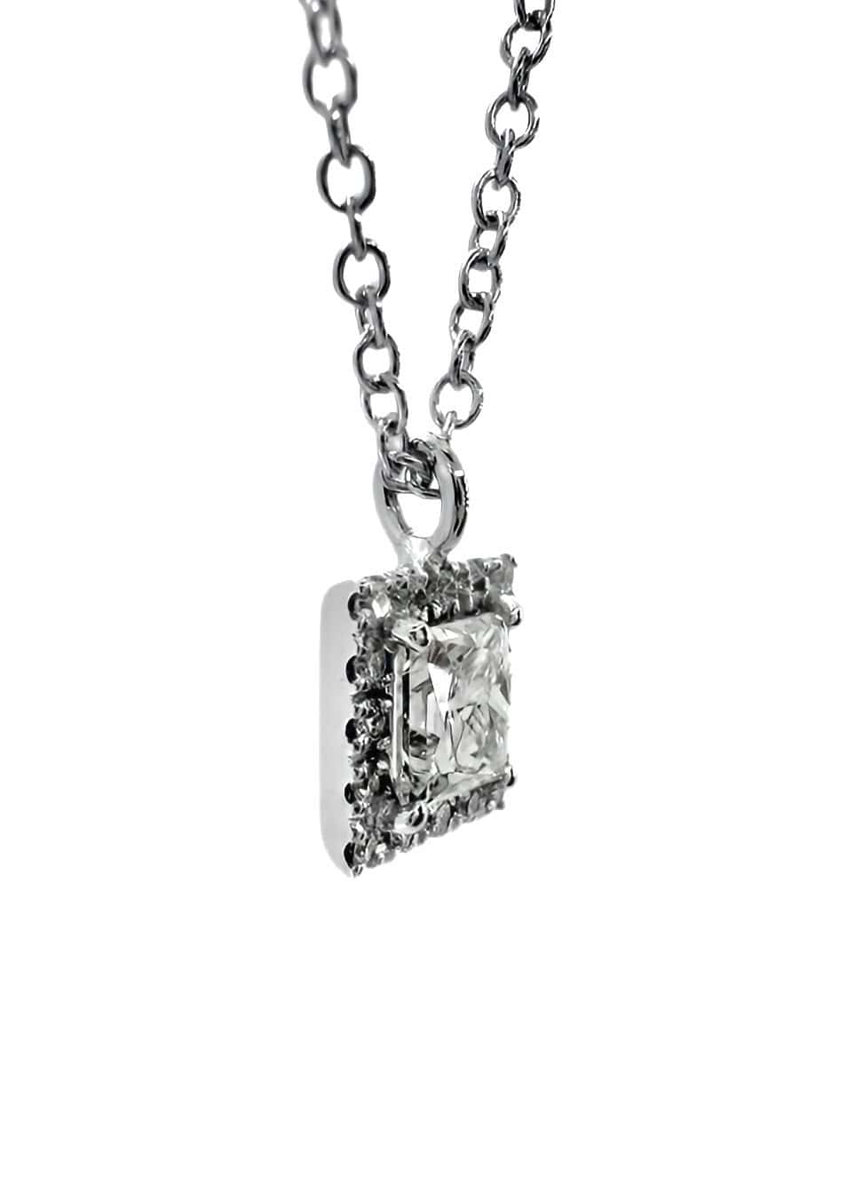 Un ciondolo con diamante radiant e contorno di brillanti รจ un gioiello di straordinaria eleganza e luminositร . Il diamante radiant, con il suo taglio unico che combina la brillantezza del taglio brillante con la forma quadrata del taglio smeraldo, cattura la luce in modo eccezionale, il contorno di brillanti, incastonati con cura attorno al diamante centrale, amplifica ulteriormente la sua brillantezza e aggiunge un tocco di lusso e raffinatezza.Possibilita di variazioni di Colore e Purezza dei diamanti su richiesta del cliente, e di sui colori di oro (giallo,rosรจ,nero) , e diamanti (bianchi,neri,marroni,colorati) per renderli davvero unici.