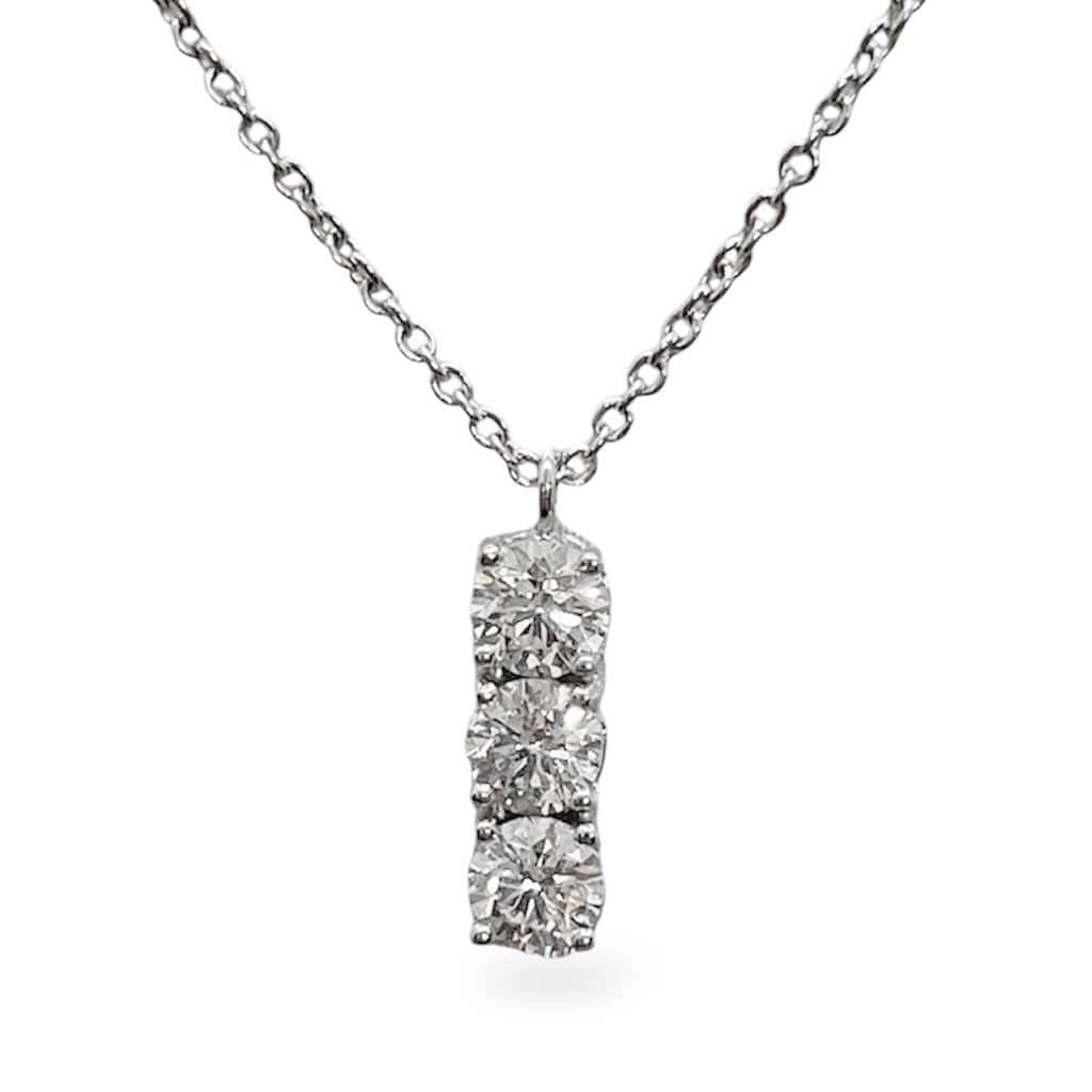 Il ciondolo trilogy è un gioiello elegante e significativo, caratterizzato da tre pietre preziose, solitamente diamanti, disposte in linea verticale. Le tre pietre rappresentano le tre fasi di una relazione: il passato, il presente e il futuro. Questo simbolismo rende il ciondolo trilogy un regalo perfetto per anniversari, fidanzamenti o altre occasioni speciali, celebrando l’amore duraturo e il legame indissolubile tra due persone, in alternativa variazioni di Colore e Purezza su richiesta del cliente.