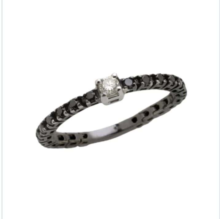 Fedina Eternity a griffe con brillanti black e spot bianco in oro 18kt bianco rodiato nero